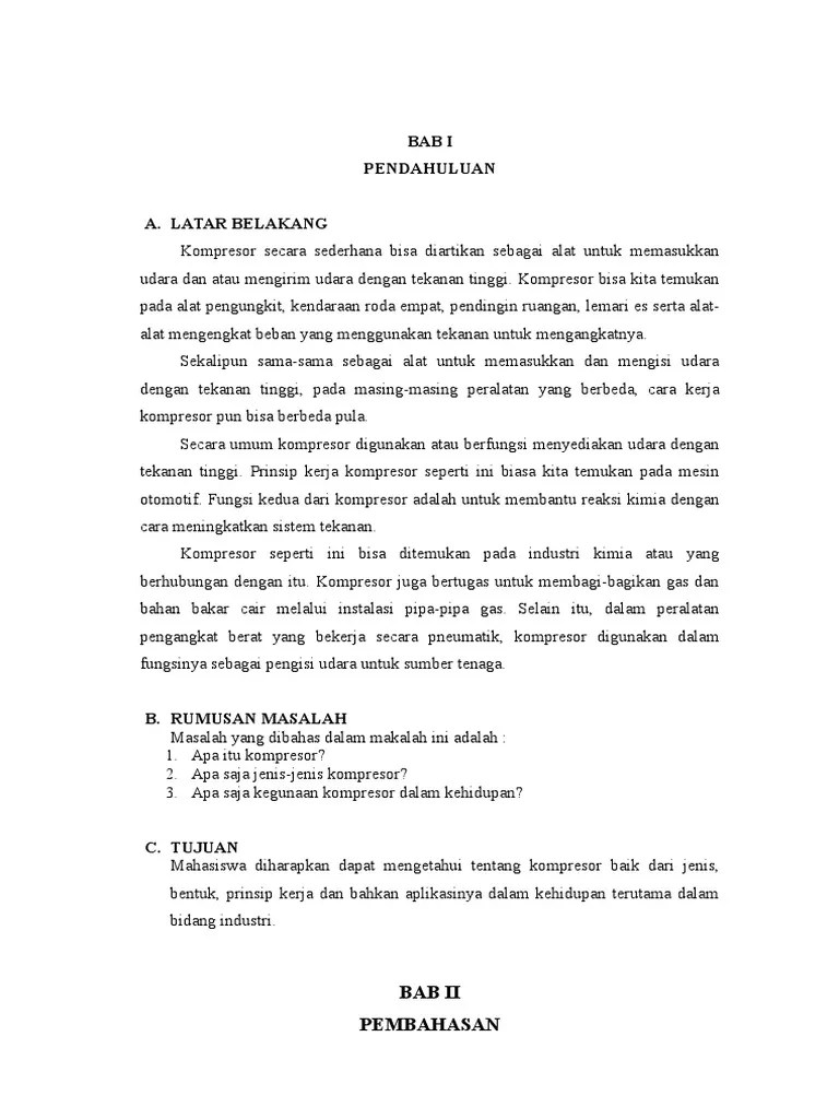 Contoh Makalah Sistem Kerja Kompresor : Tugas Makalah Kompresor : Kompresor merupakan mesin untuk menaikkan tekanan udara dengan cara memampatkan gas atau udara yang kerjanya didapat dari poros.. Sebagai contoh, udara mampat yang digunakan untuk mengisi ban . Kompresor merupakan mesin untuk menaikkan tekanan udara dengan cara memampatkan gas atau udara yang kerjanya didapat dari poros. Pengertian dan fungsi kompresor torak kerja . Prinsip kerja kompresor seperti ini biasa kita temukan pada mesin otomotif. Prinsip kerjanya hampir sama dengan kompresor torak.